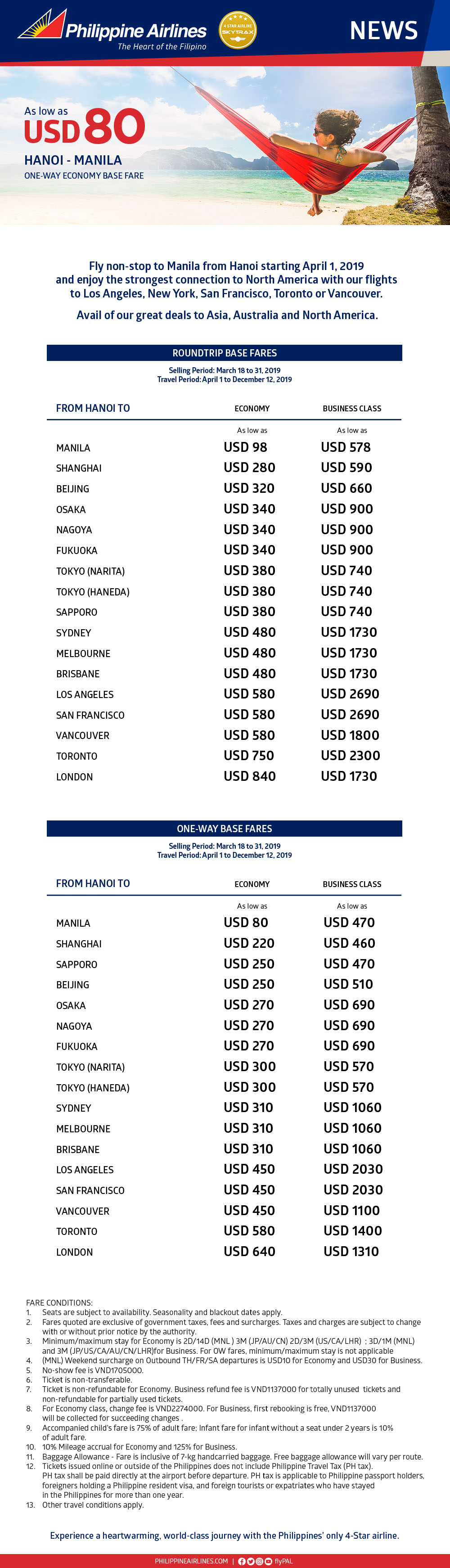 Travel Advisory HAN: Philippine Airlines 78th anniversary